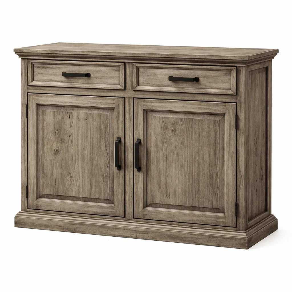 Buffet en bois gris avec portes et tiroirs
