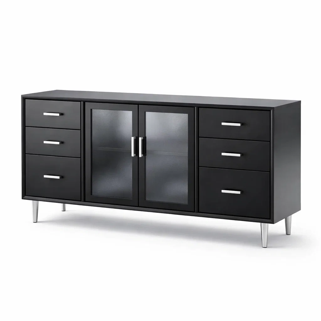 Buffet noir en bois avec portes en verre trempé