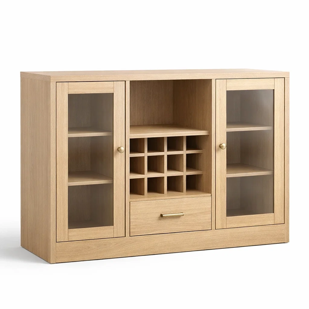 Buffet en bois de chêne avec portes en verre trempé