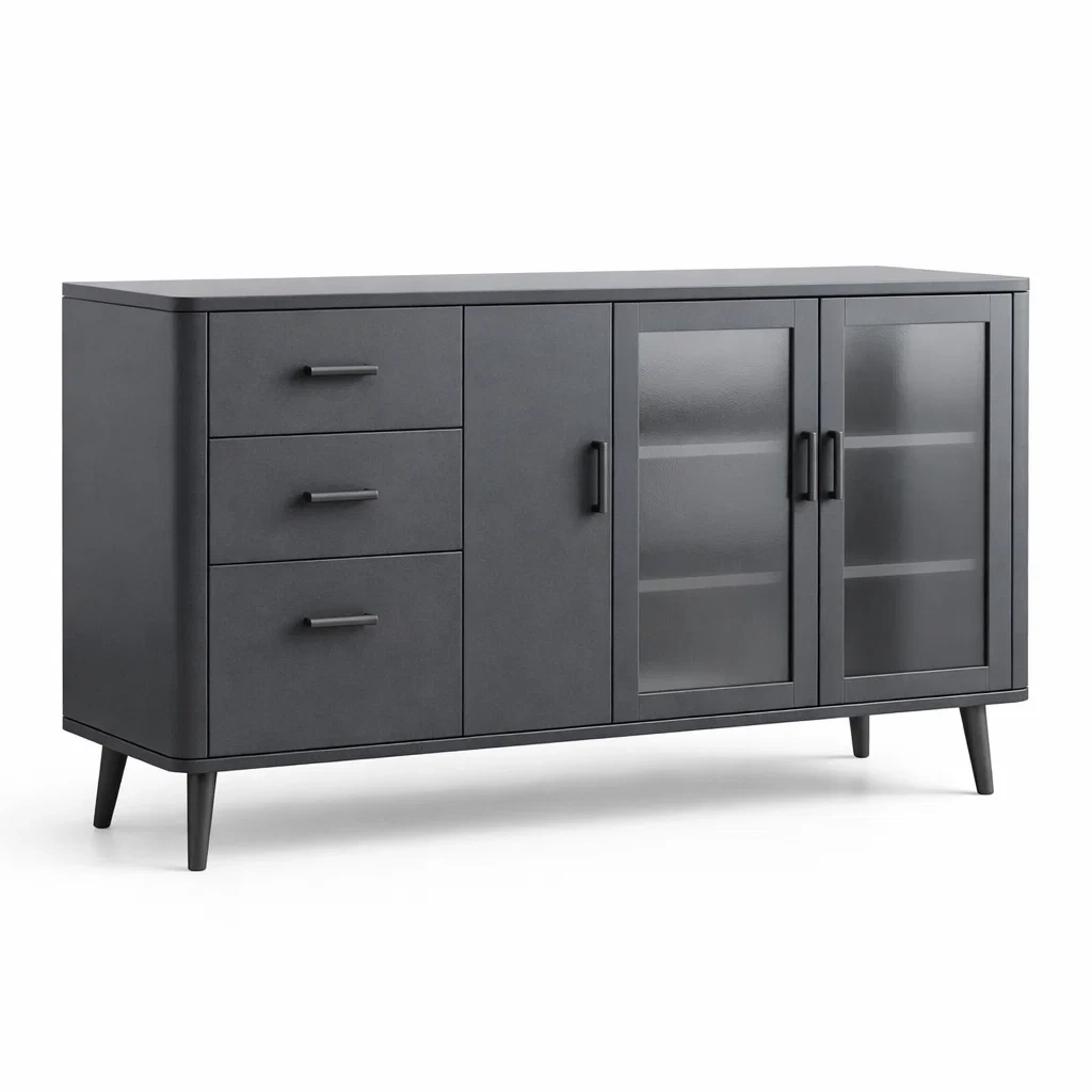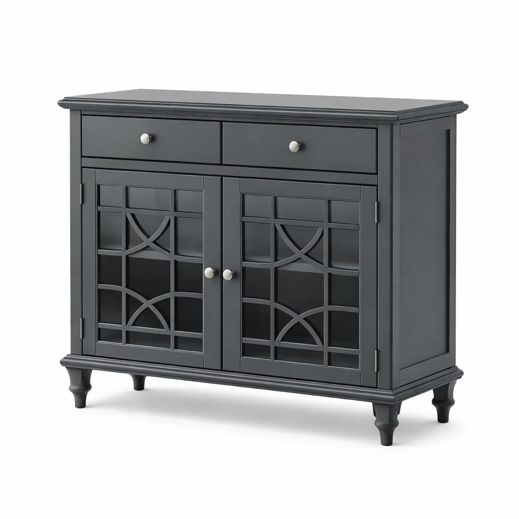 Buffet en bois MDF gris avec détails en verre