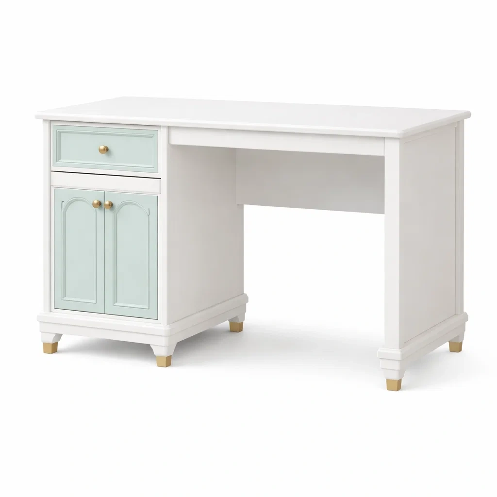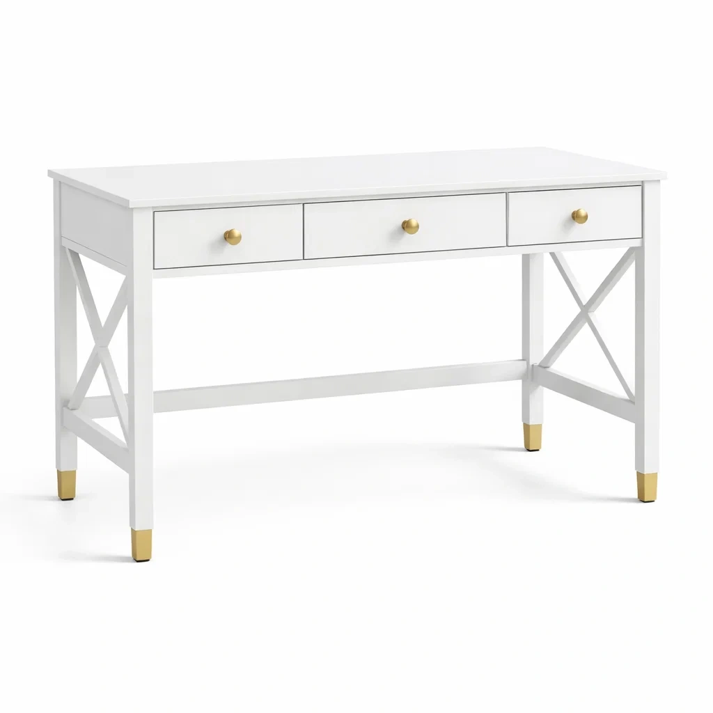 Bureau en bois blanc avec détails dorés