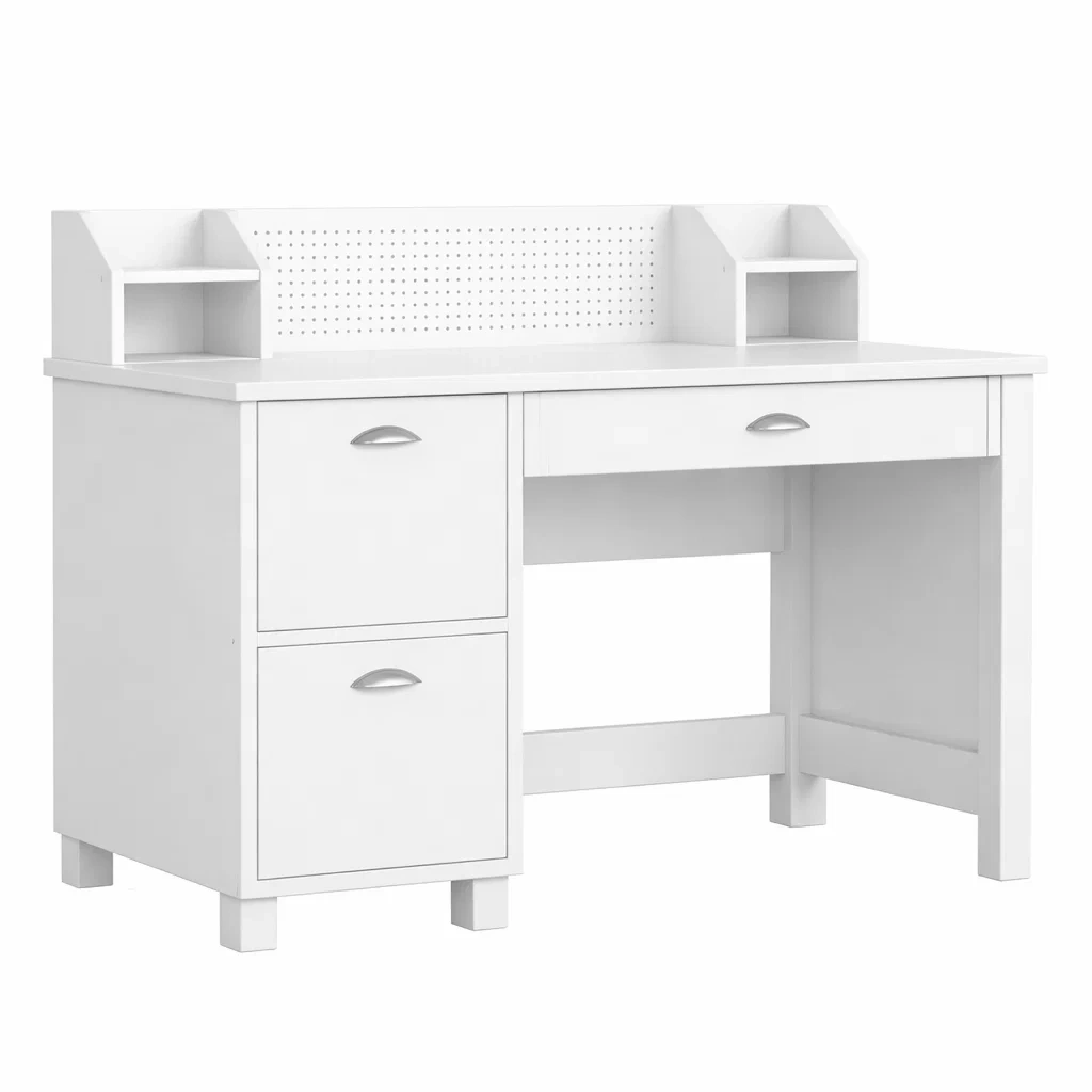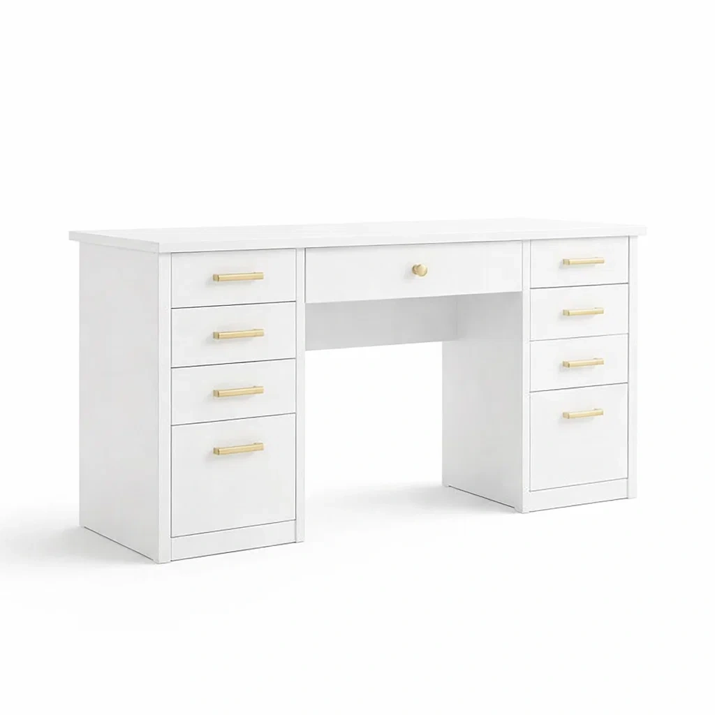 Bureau rectangulaire blanc en bois avec 9 tiroirs