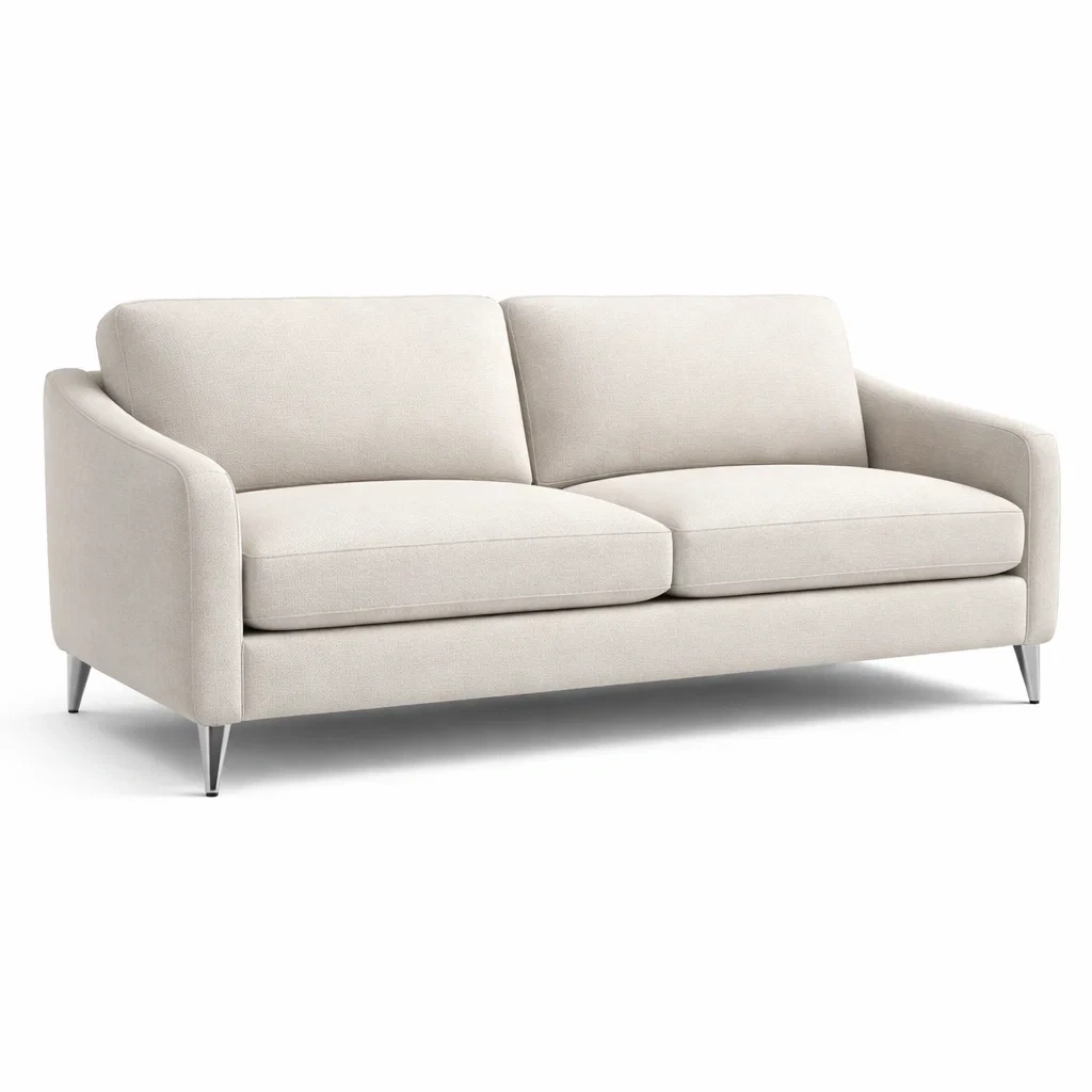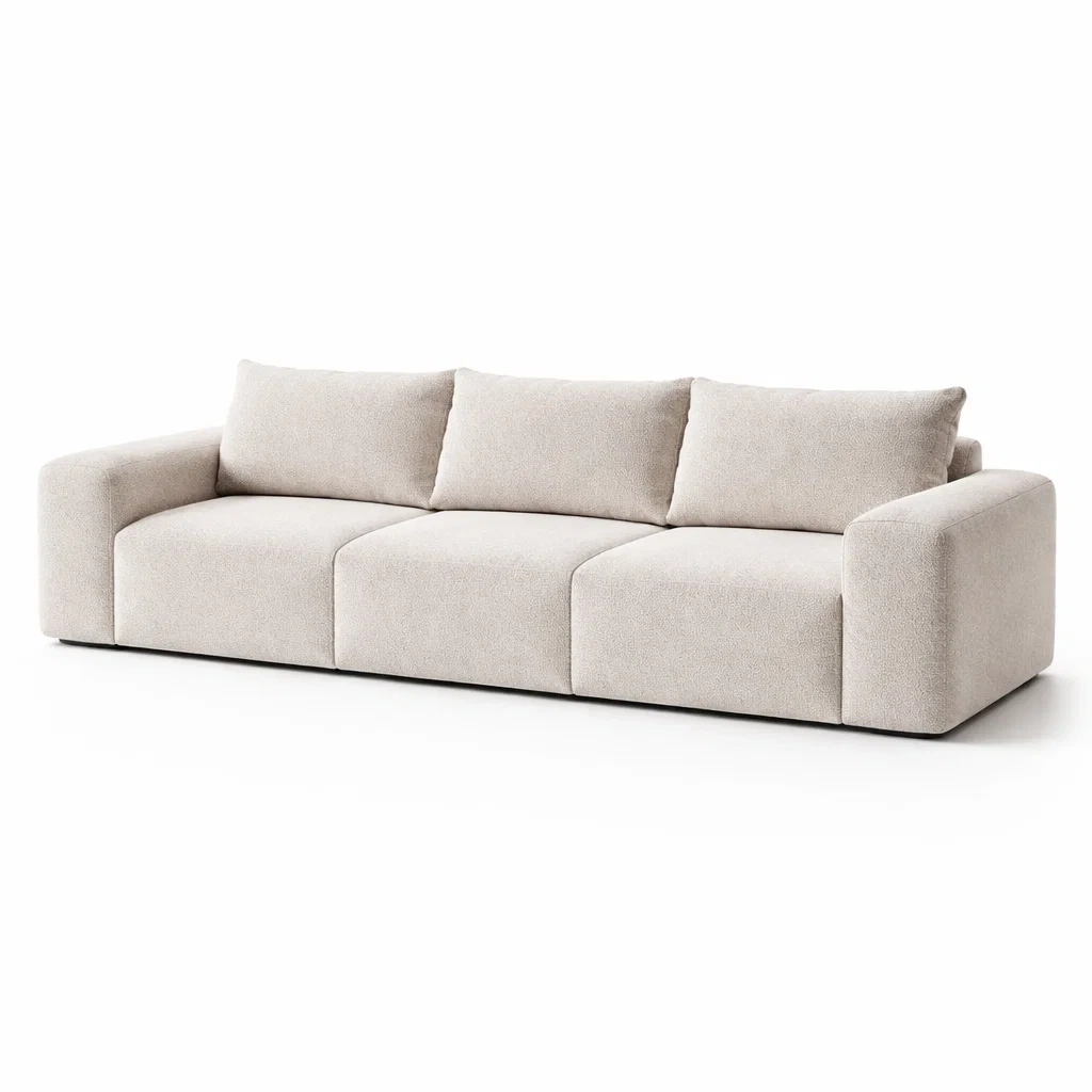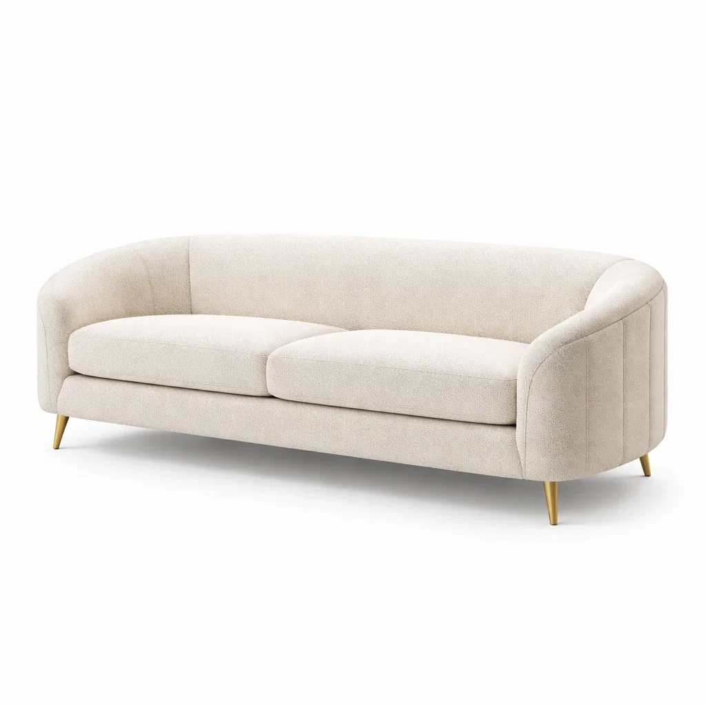 Canapé 3 places en tissu beige avec structure en métal et pieds dorés