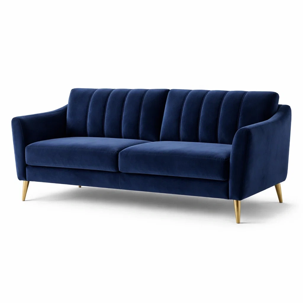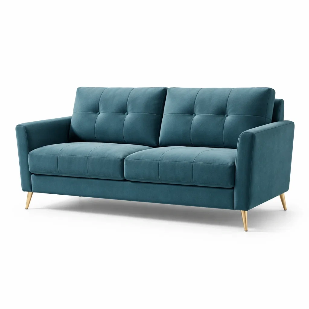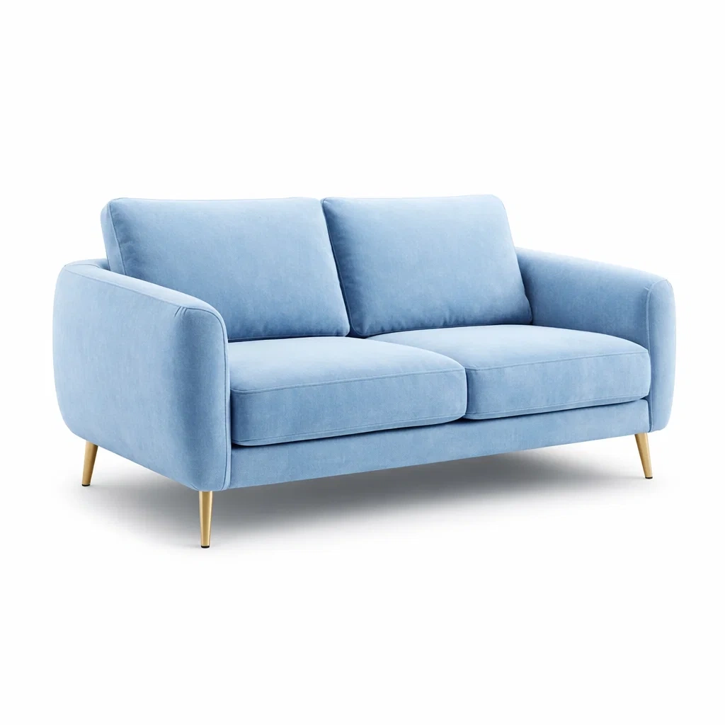 Canapé 2 places en velours bleu avec pieds métalliques dorés