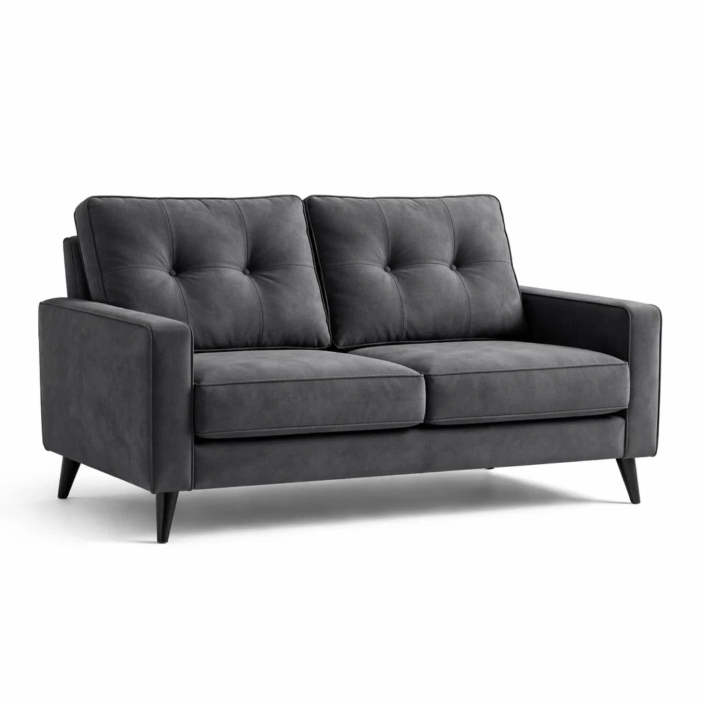 Canapé 2 places en cuir synthétique gris avec structure en bois