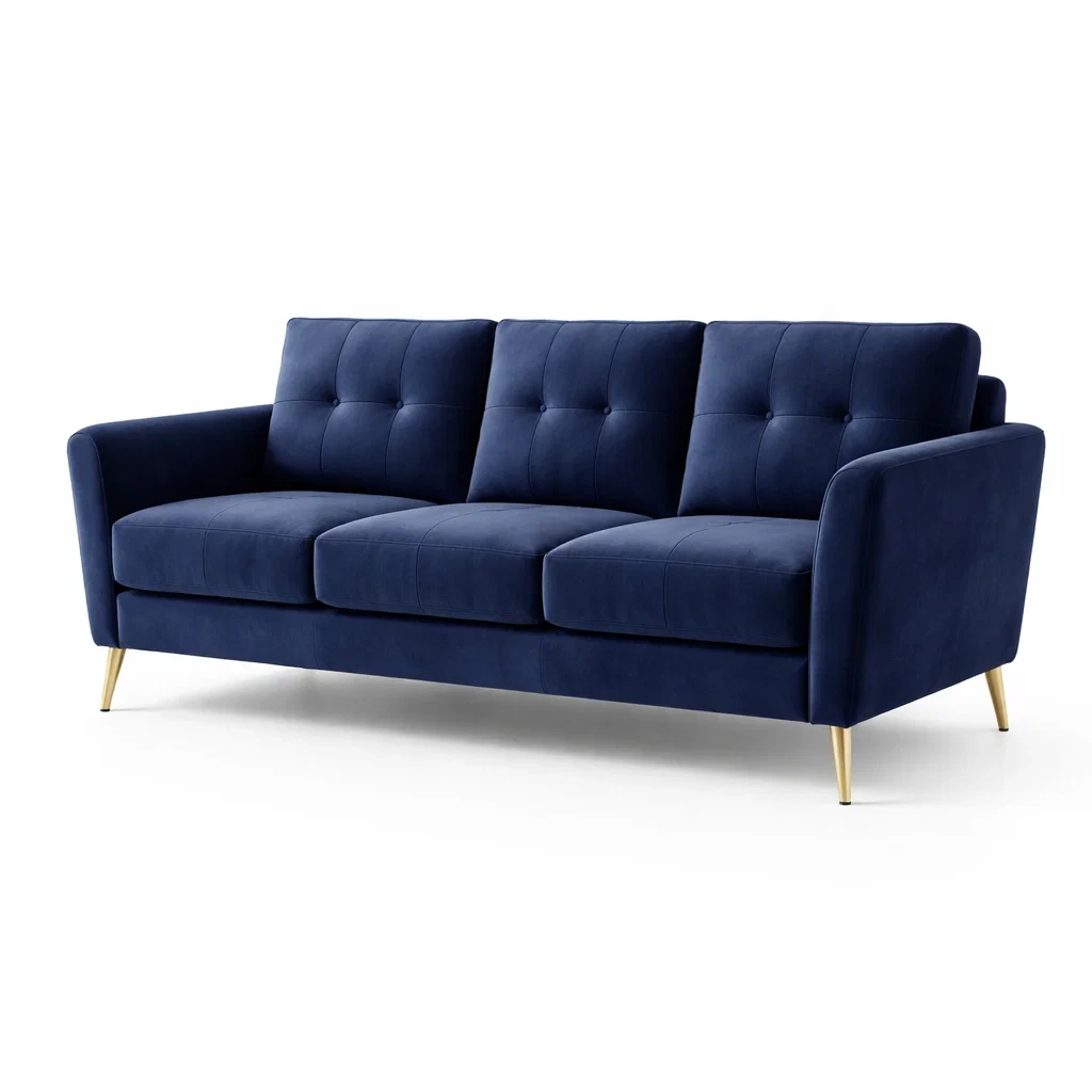 Canapé 3 places en velours bleu avec pieds en métal doré