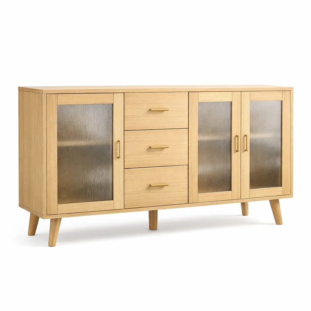 Ce buffet est fabriqué en bois massif avec des portes en verre texturé de 4 mm.