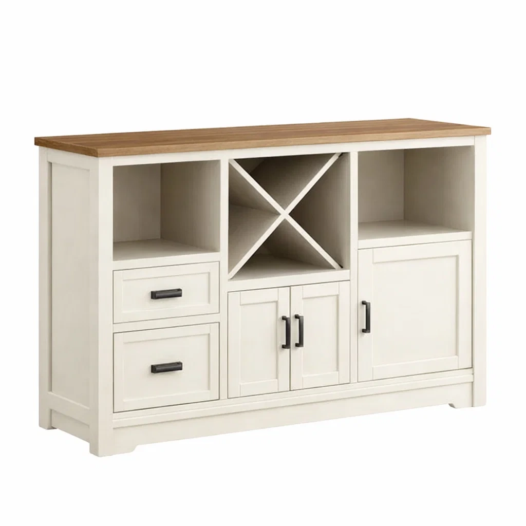 - Espace de rangement : 2 tiroirs, 3 compartiments ouverts, 1 étagère à vin, 1 placard