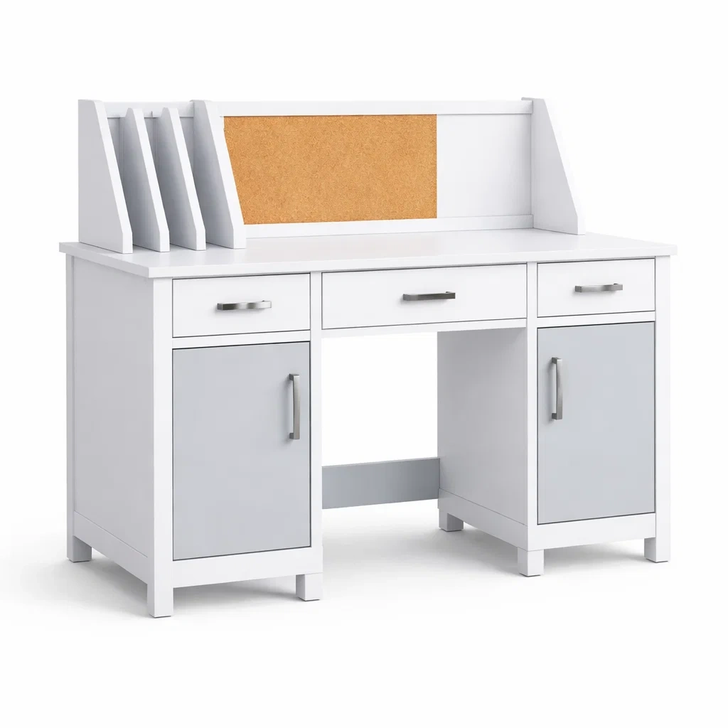 Comprend 3 tiroirs, 2 placards et des espaces de classement pour documents. Le panneau de liège est approprié pour les notes.