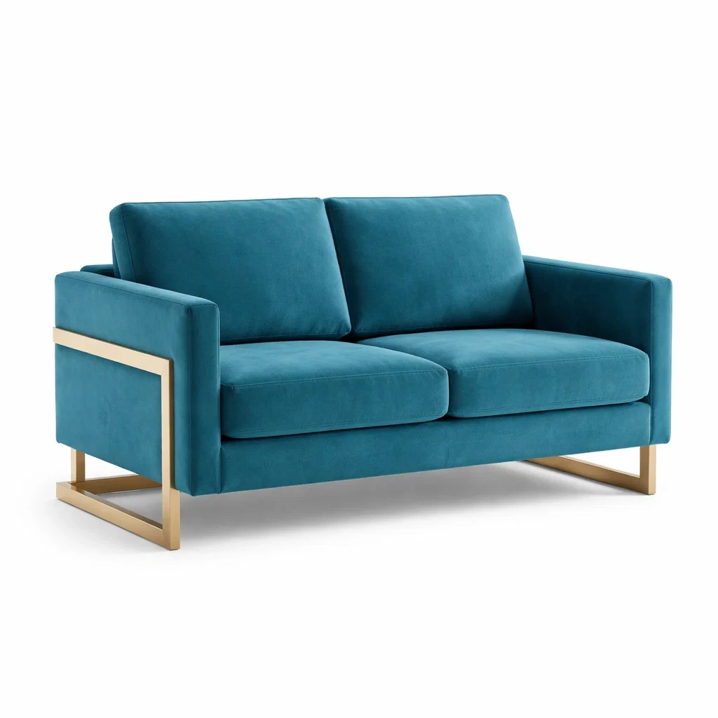 Ce canapé 2 places est revêtu de velours avec un cadre en métal. Les coussins sont rembourrés de mousse haute densité pour un confort optimal.