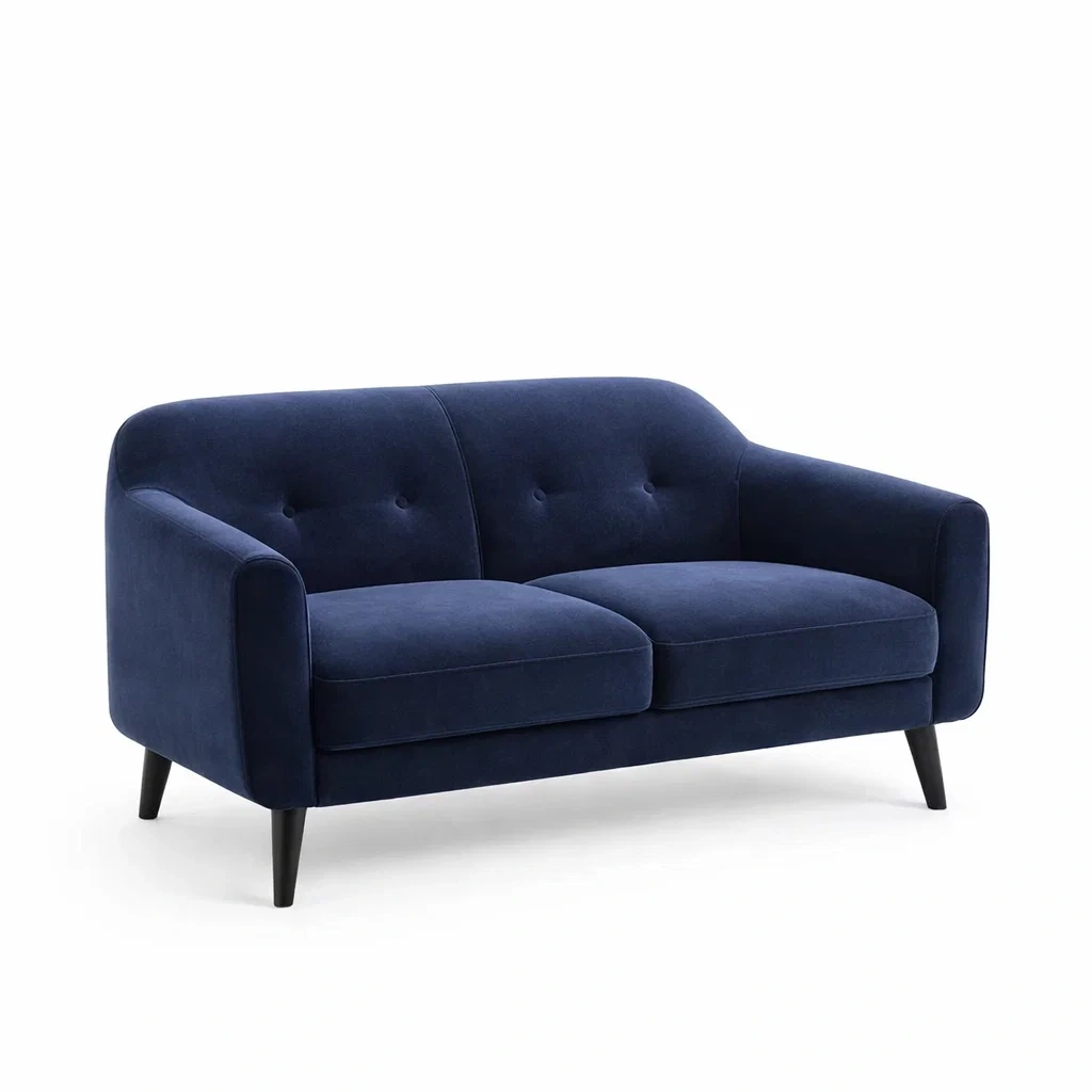 Revêtement en velours de coton, pieds en hêtre.