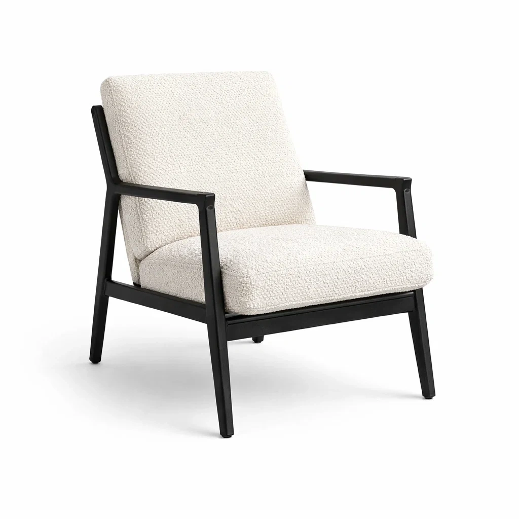 Structure en acier avec revêtement en tissu bouclette. Dimensions totales: 85 cm de hauteur, 75 cm de largeur et 80 cm de profondeur. Hauteur du siège: 45 cm, profondeur d'assise: 55 cm. Poids total: 12 kg. Aucun composant amovible ou fonction réglable n'est inclus. Assemblage requis avec instructions fournies.