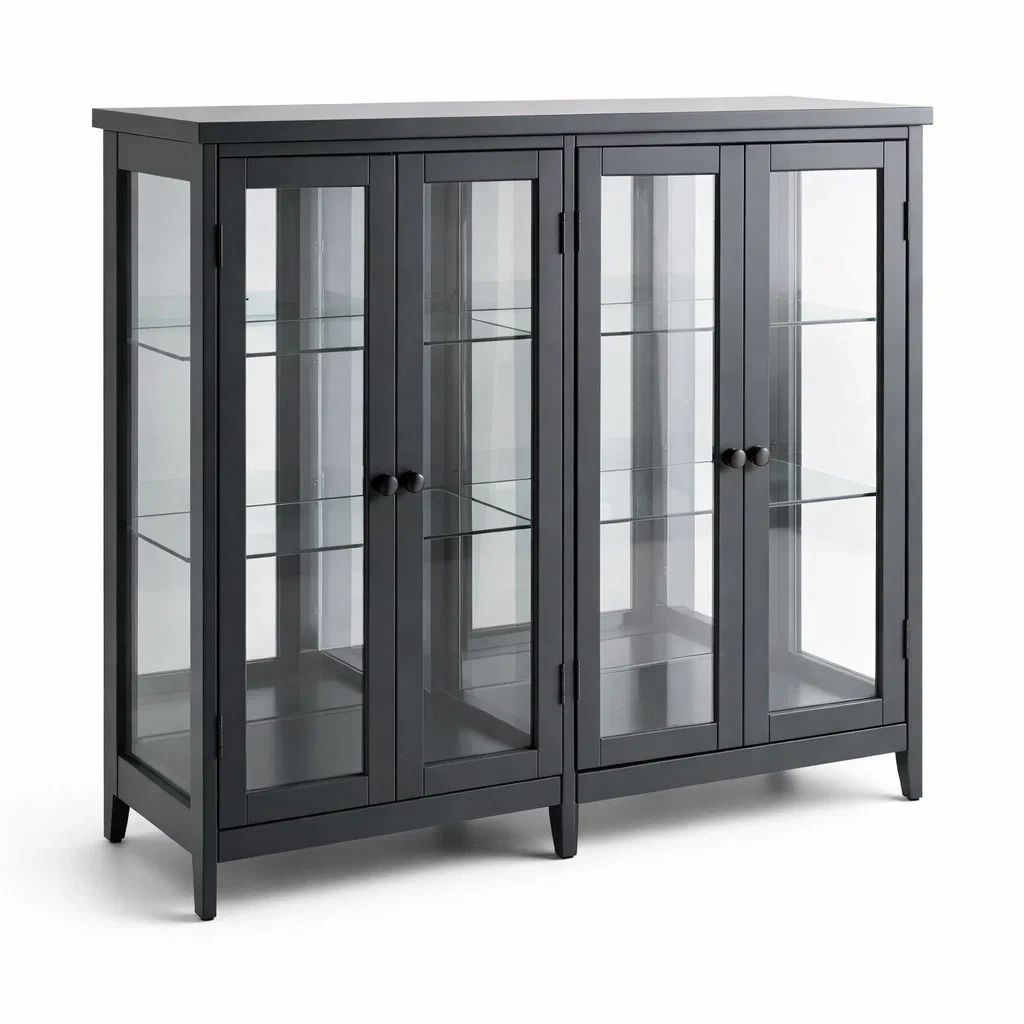 Matériaux : structure en bois, portes et étagères en verre trempé de 5 mm